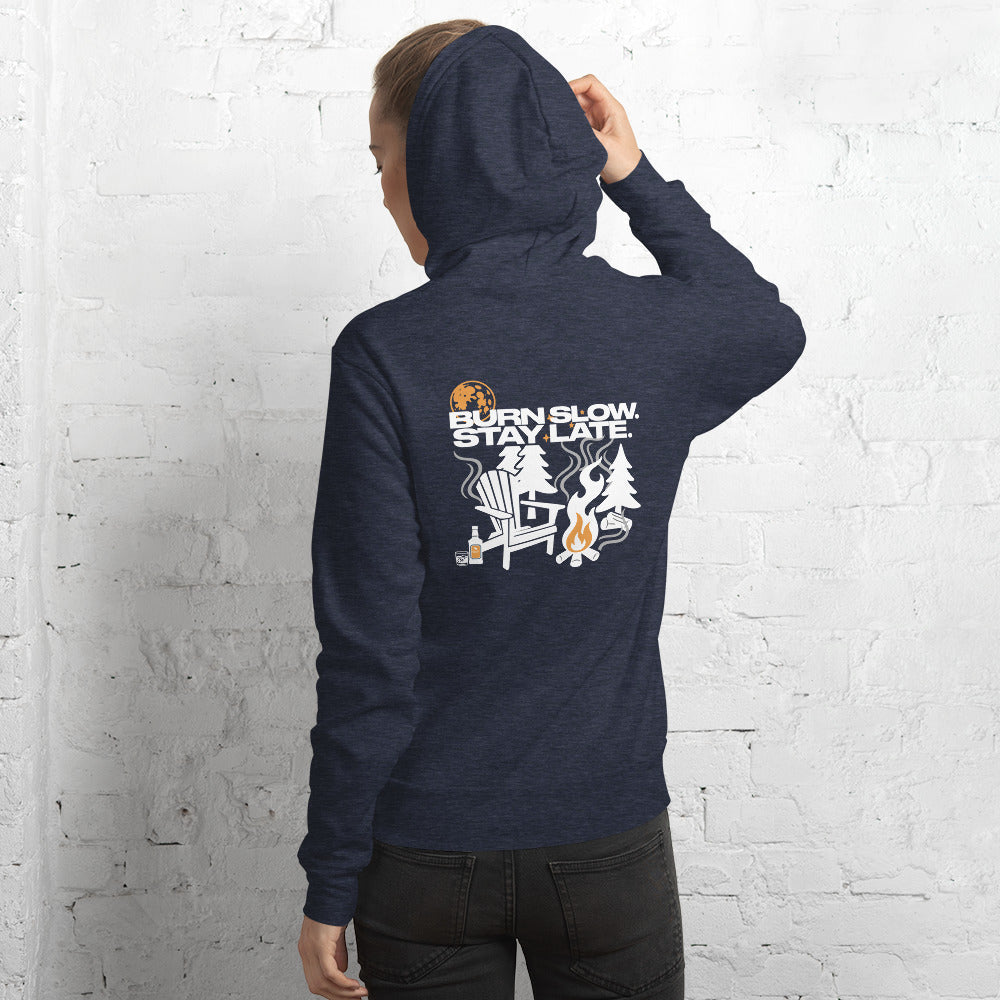 When the fire burns low and the night stretches on, the Midnight Ember is still there—keeping the glow alive. This premium hoodie brings the warmth and comfort you need for long nights by the fire and crisp mornings after.